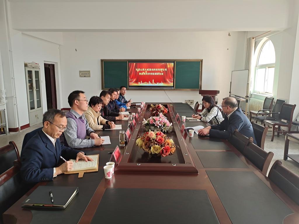 2021年3月5日下午,应用科学学院与大威激光科技有限公司在实验楼701室进行了产学合作洽谈,在组建大威激光班、联合培养研究生以及光电信息科学与工程专业本科生的就业等方面进行了深入的意见交换。院长王希云、院党委书记仝卫明、副院长林金保、李晋红教授以及物理系负责人李坤和秦振兴老师及辅导员李刚老师参加了本次座谈会。大威激光科技有限公司翟富贵(公司副总)、徐绍丽(人事总监)出席了座谈会,并对光电信息科学与工程2021届毕业生做专场招聘宣讲。