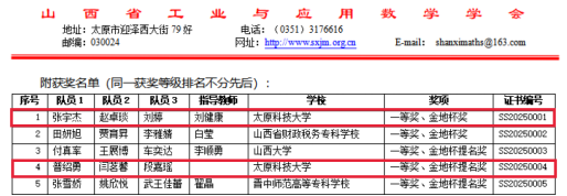 近日,2025年“金地杯”山西省大学生数学建模竞赛成绩揭晓,太原科技大学144支队伍取得了优异成绩:1支参赛队获金地杯奖,1支参赛队获金地杯提名奖,36支参赛队获一等奖,65支参赛队获二等奖,43支参赛队获三等奖,这是我校在该项赛事中取得的最好成绩。