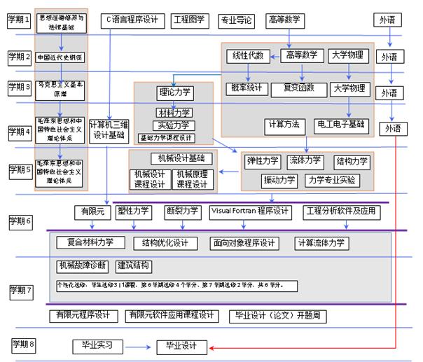 金工实习、机械原理课程设计、机械设计课程设计、有限元课程设计、基础力学课程设计、有限元软件课程设计、毕业实习、毕业设计(论文)等。